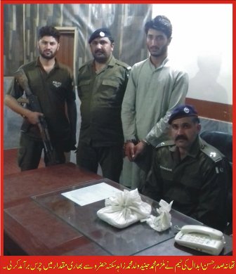 تھانہ صدر حسن ابدال کے ایس آئی محمد یونس نے مخبر خاص کی اطلاع محمد جنید عرف بلا ولد محمد زاہد سکنہ حضروسے 1400 گرام چرس برآمدکرکے ملزم کے خلاف مقدمہ درج کرلیا۔ترجمان اٹک پولیس Jul 01, 2019