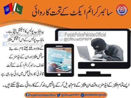 پنجاب پولیس کے آفیشل سوشل میڈیا پیج سے ملتے جلتے ناموں سے سوشل میڈیا اکاونٹس بنانا اور چلانا غیر قانونی اور قابل سزا جرم ہے