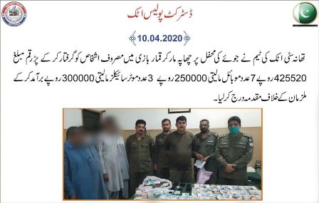 تھانہ سٹی اٹک کی ٹیم کی جوئے بازوں کے خلاف کاروائی۔