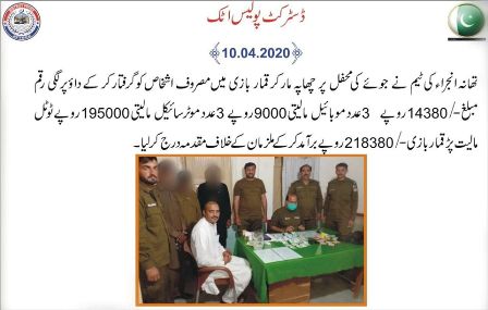 تھانہ انجراء کی ٹیم کی جوئے بازوں کے خلاف کاروائی۔