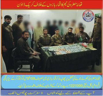 تھانہ حضرو کی ٹیم کی قمار بازوں کے خلاف کاروائی۔