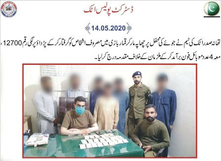 ڈسٹرکٹ پولیس آفیسر اٹک سید خالد ہمدانی کی خصوصی ہداایت پر تھانہ صدر اٹک کی ٹیم کی قمار بازوں کے خلاف کامیاب کاروائی۔