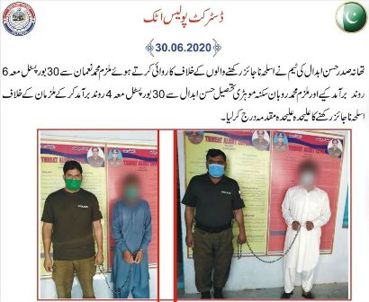 ڈسٹرکٹ پولیس آفیسر اٹک سید خالد ہمدانی کی خصوصی ہدایات پر تھانہ صدر حسن ابدال کی ٹیم کی ناجائز اسلحہ رکھنے والوں کے خلاف کامیاب کاروائی۔