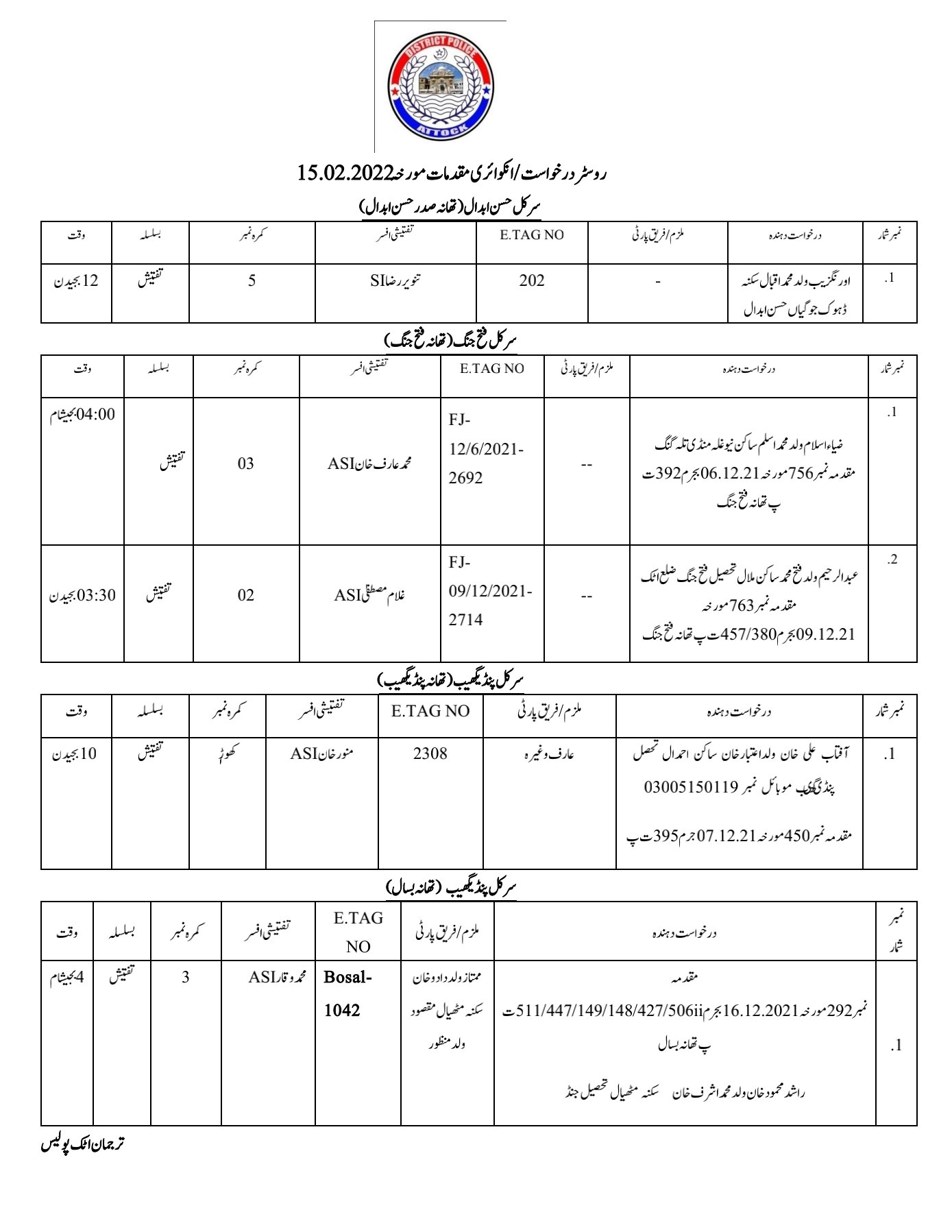 ضلع کے تمام تھانہ جات میں بسلسلہ تفتیش اور انکوائری کے لیے بلوائیں جانے والے سائلین اپنے نام نیچے دی گئیں فہرستوں میں چیک کر سکتے ہیں اسکے علاوہ بذریعہ کال سروس متعلقہ تھانہ سے بھی آپ کو آگاہ کیا جا تا ہے۔اٹک پولیس اپنے آفیشل فیس بک پیج ،ٹویٹر اکاؤنٹ اور ویب سائٹ کے ذریعہ پبلک کو تمام تر معلومات روزانہ کی بنیاد پر فراہم کر رہی ہے ۔