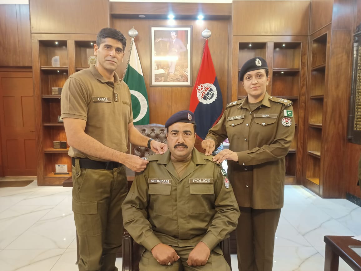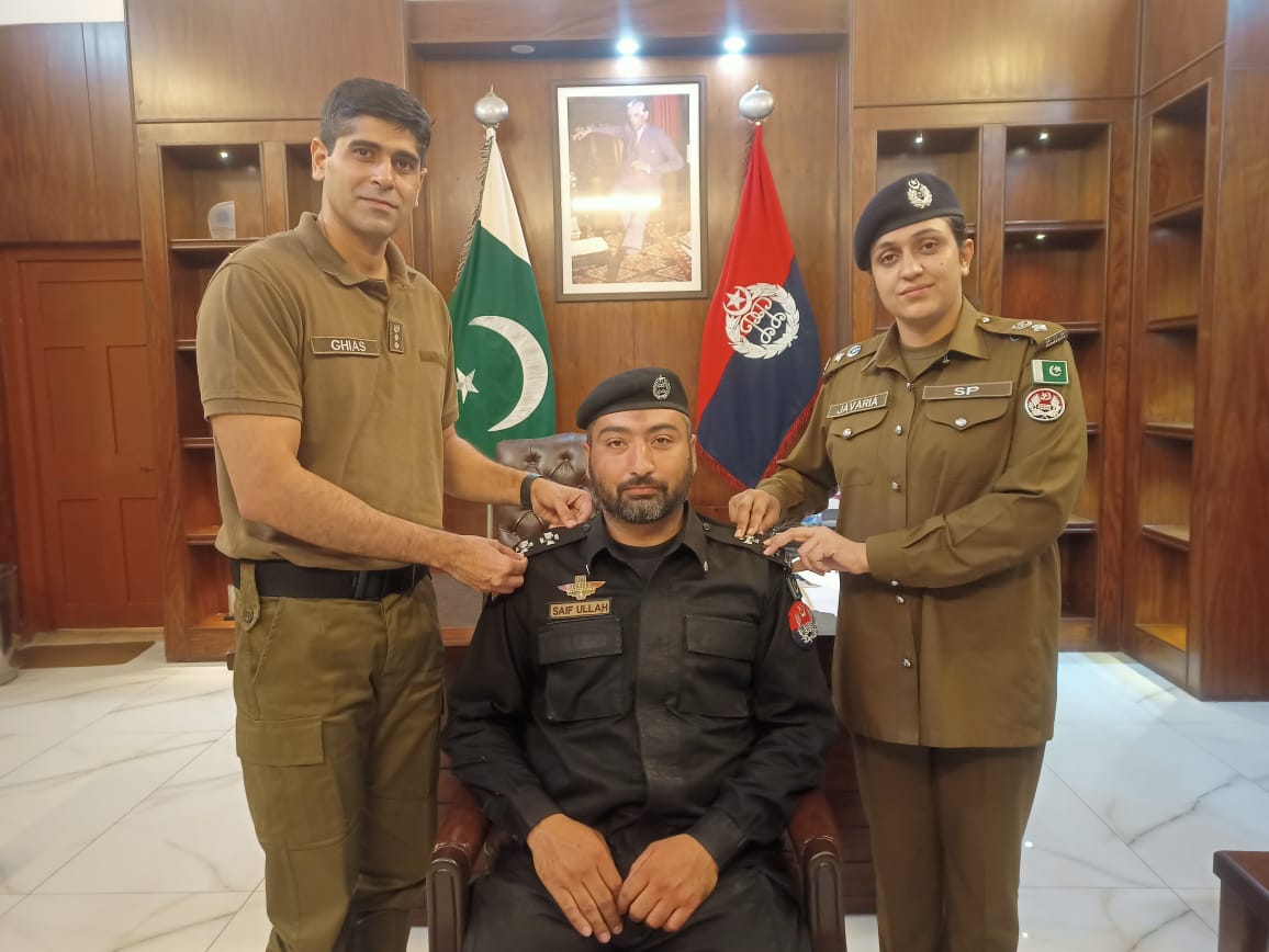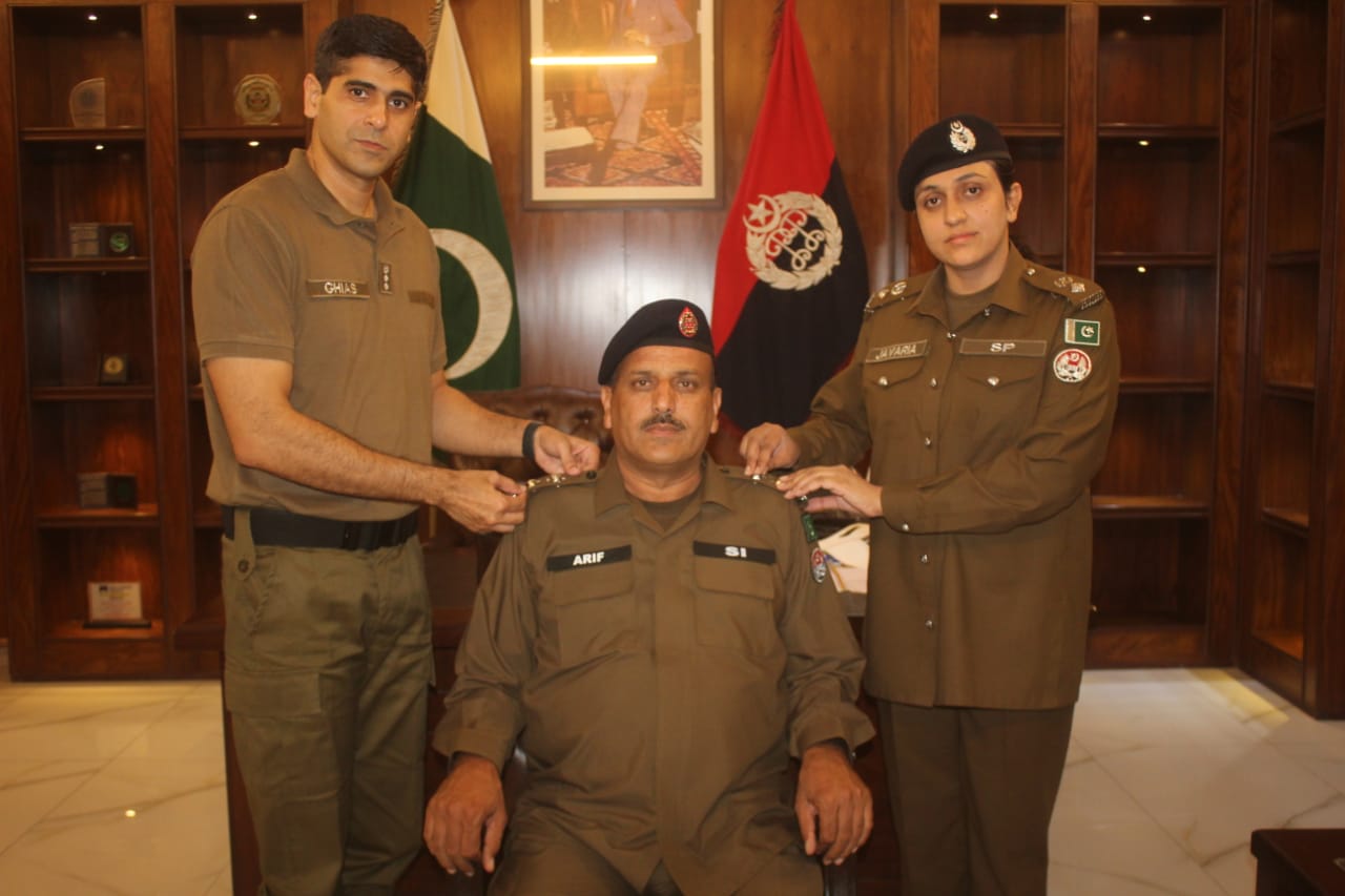 ڈی پی او اٹک ڈاکٹر سردار غیاث گل خان اور ایس پی انویسٹی گیشن اٹک جویریہ محمد جمیل نے ترقی پانے والے پولیس افسران کو رینک لگائے،