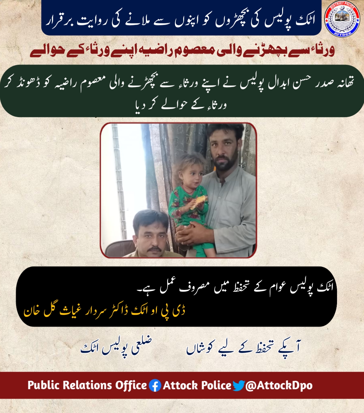 اٹک پولیس بچھڑوں کو اپنوں سے ملانے کی روایت برقرار