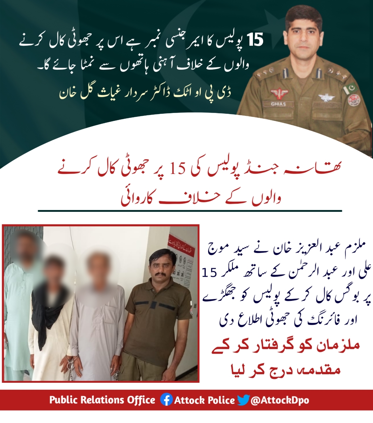 تھانہ جنڈ پولیس کی 15 پر جھوٹی کال کرنے والوں کے خلاف کامیاب کاروائی