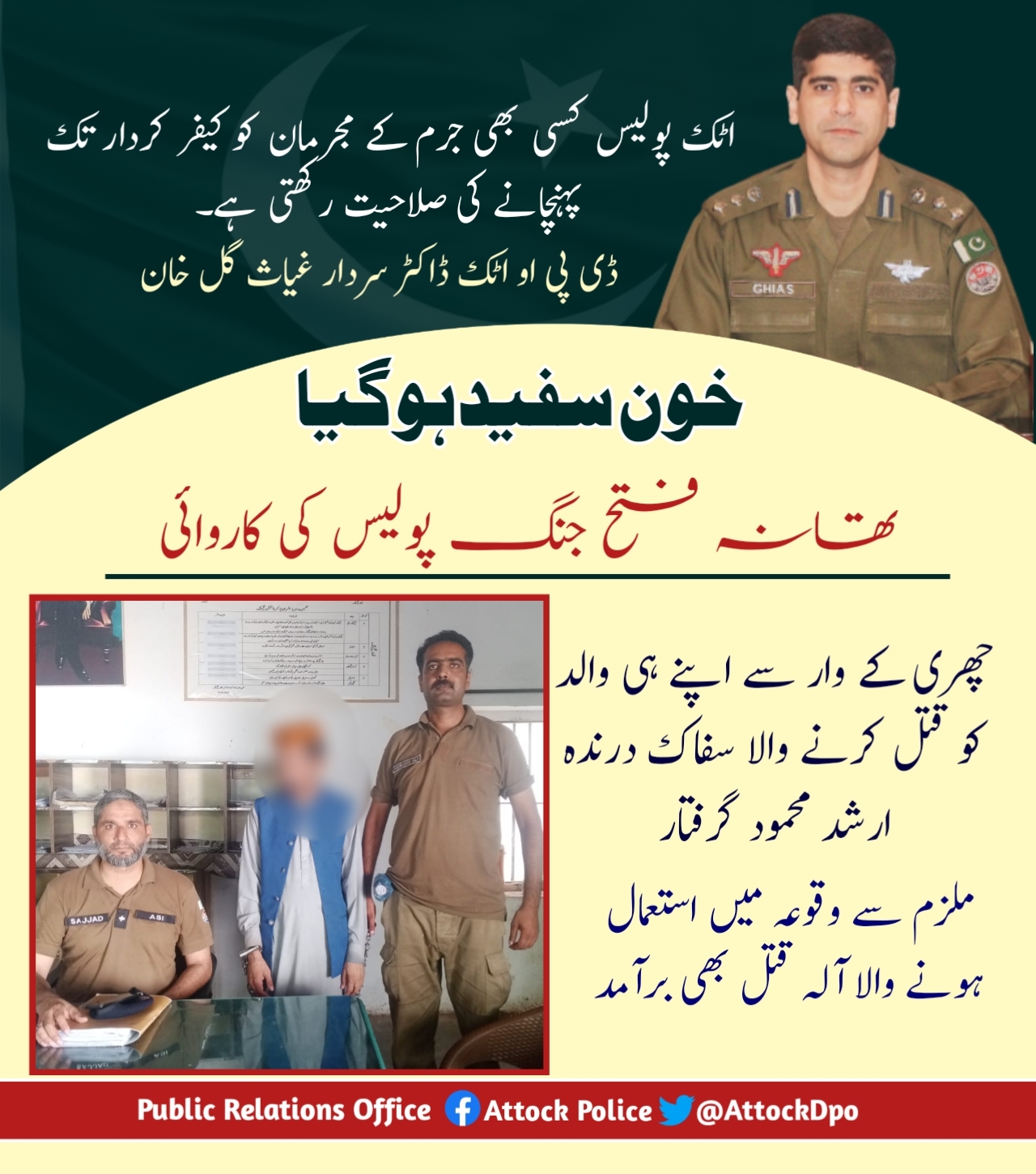 خون سفید ہو گیا،اپنے والد کو چھری کے وار کر کے قتل کرنے والا ملزم گرفتار