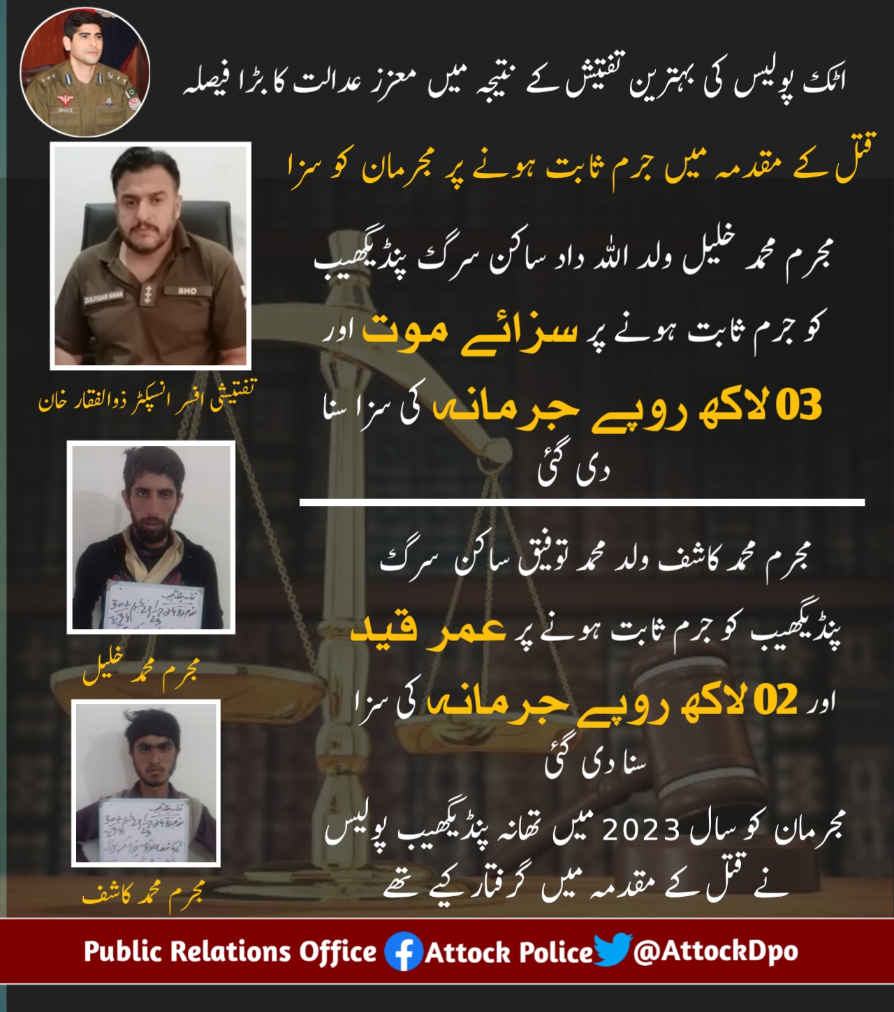 اٹک پولیس کی بہترین تفتیش کے نتیجہ میں معزز عدالت کا بڑا فیصلہ