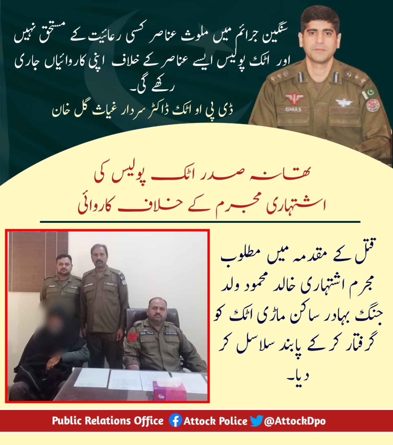 تھانہ صدر اٹک پولیس کی اشتہاری مجرمان کے خلاف کامیاب کاروائی