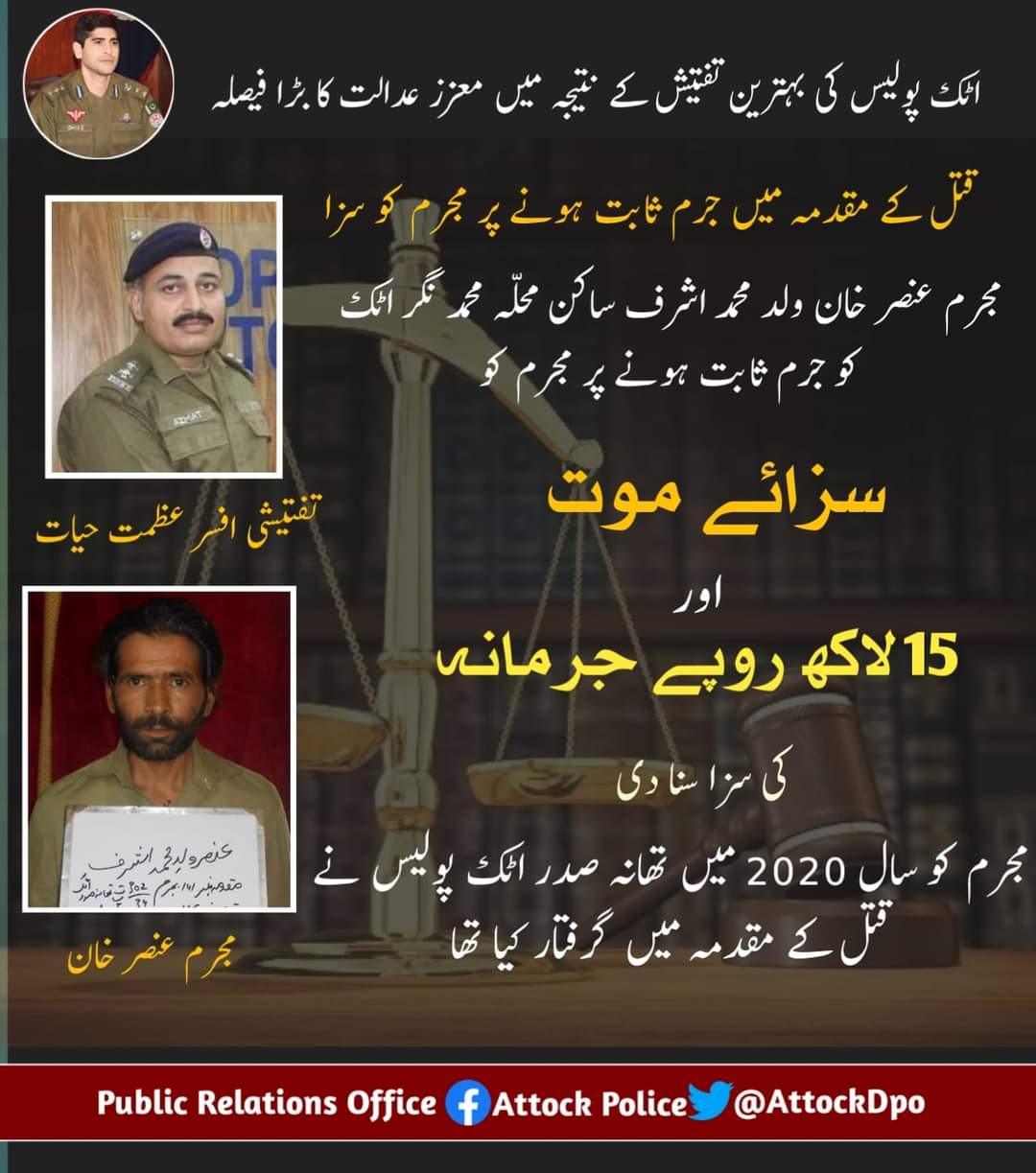 اٹک پولیس کی بہترین تفتیش کے نتیجہ میں معزز عدالت کا بڑا فیصلہ،