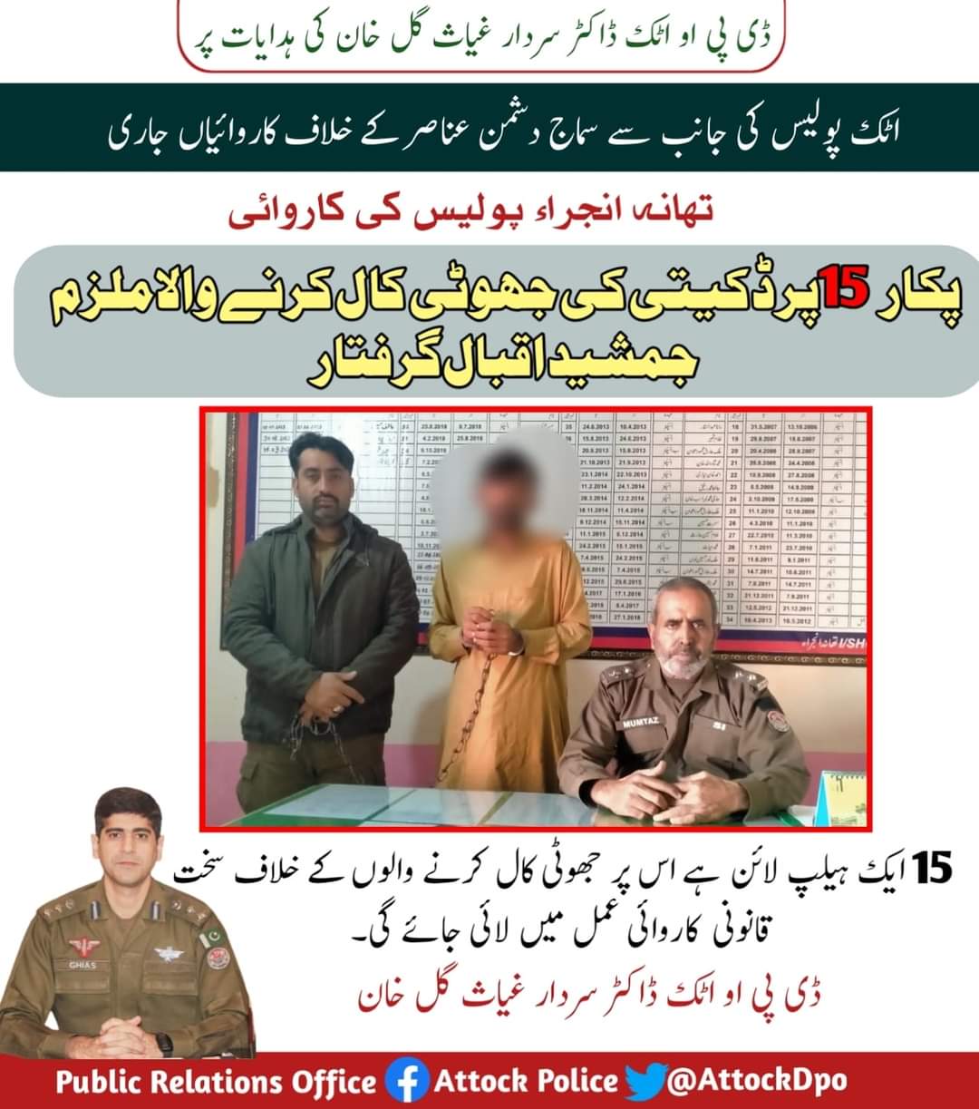 تھانہ انجراء پولیس کی کاروائی، پکار 15 پر ڈکیتی کی جھوٹی کال کرنے والا ملزم جمشید اقبال گرفتار،‎