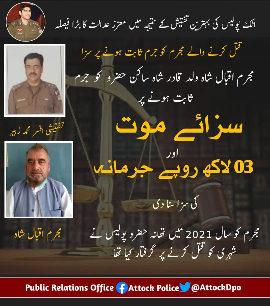 اٹک پولیس کی بہترین تفتیش کے نتیجہ میں معزز عدالت کا بڑا فیصلہ،