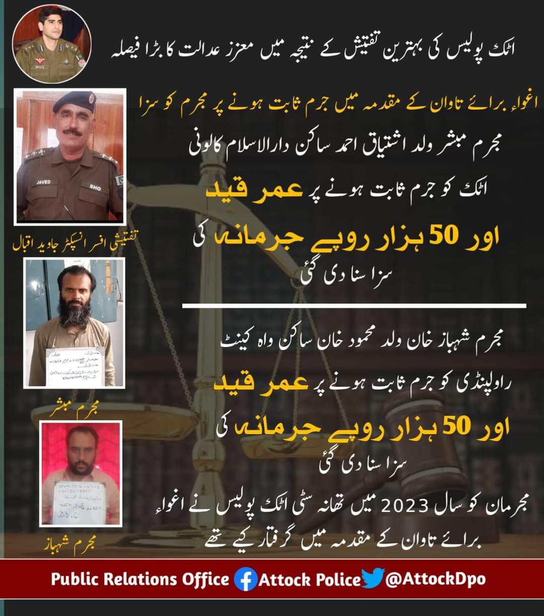 اٹک پولیس کی بہترین تفتیش کے نتیجہ میں معزز عدالت کا بڑا فیصلہ،