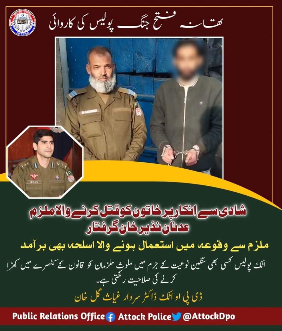 شادی سے انکار پر لڑکی کو قتل کرنے والا ملزم گرفتار