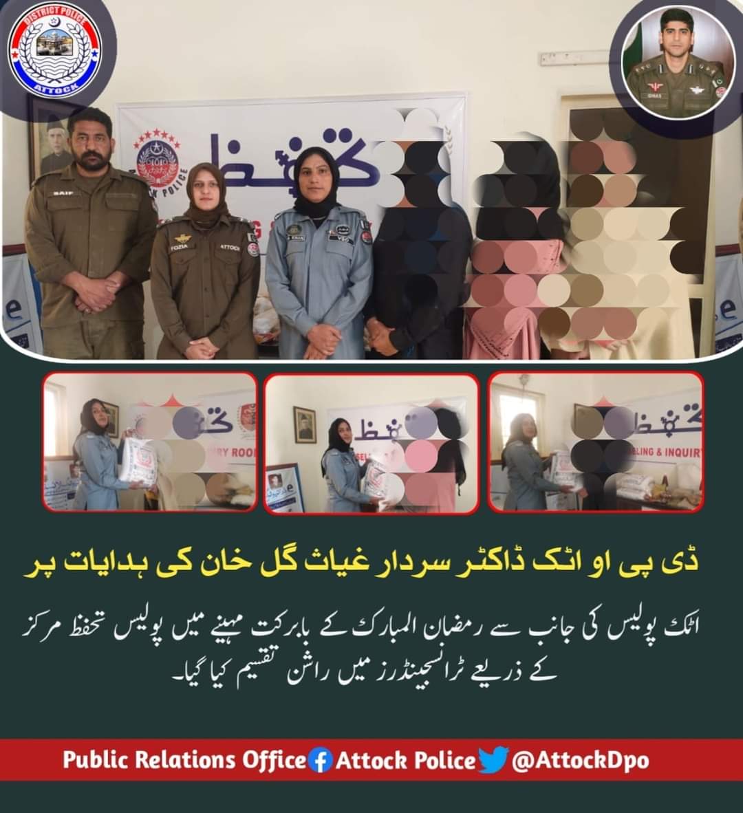 ڈسٹرکٹ پولیس آفیسر اٹک ڈاکٹر سردار غیاث گل خان کی ہدایات پر اٹک پولیس کی جانب سے رمضان المبارک کے بابرکت مہینے میں پولیس تحفظ مرکز کے ذریعے ٹرانسجینڈرز میں راشن تقسیم کیا گیا۔ ترجمان اٹک پولیس Punjab Police Pakistan RPO Rawalpindi‎