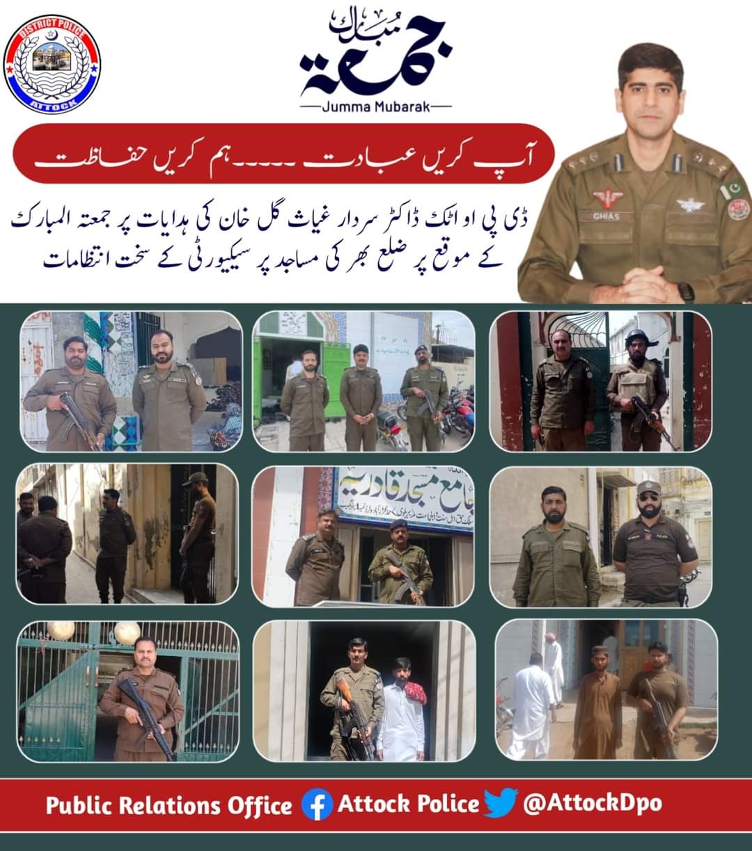 آپ کریں عبادت ہم کریں حفاظت ڈی پی او اٹک ڈاکٹر سردار غیاث گل خان کی ہدایات پر جمعتہ المبارک کے موقع پر ضلع بھر کی مساجد پر سیکیورٹی کے سخت انتظامات،