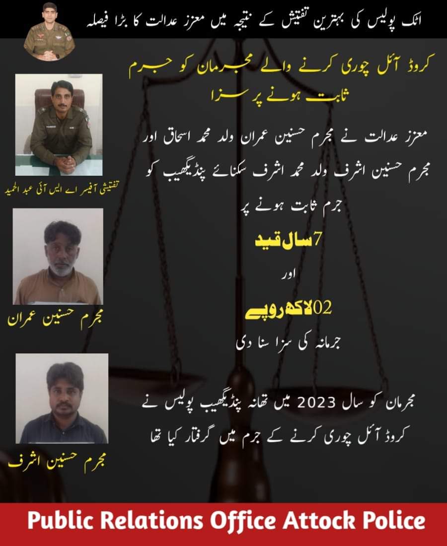 اٹک پولیس کی بہترین تفتیش کے نتیجے میں معزز عدالت کا فیصلہ