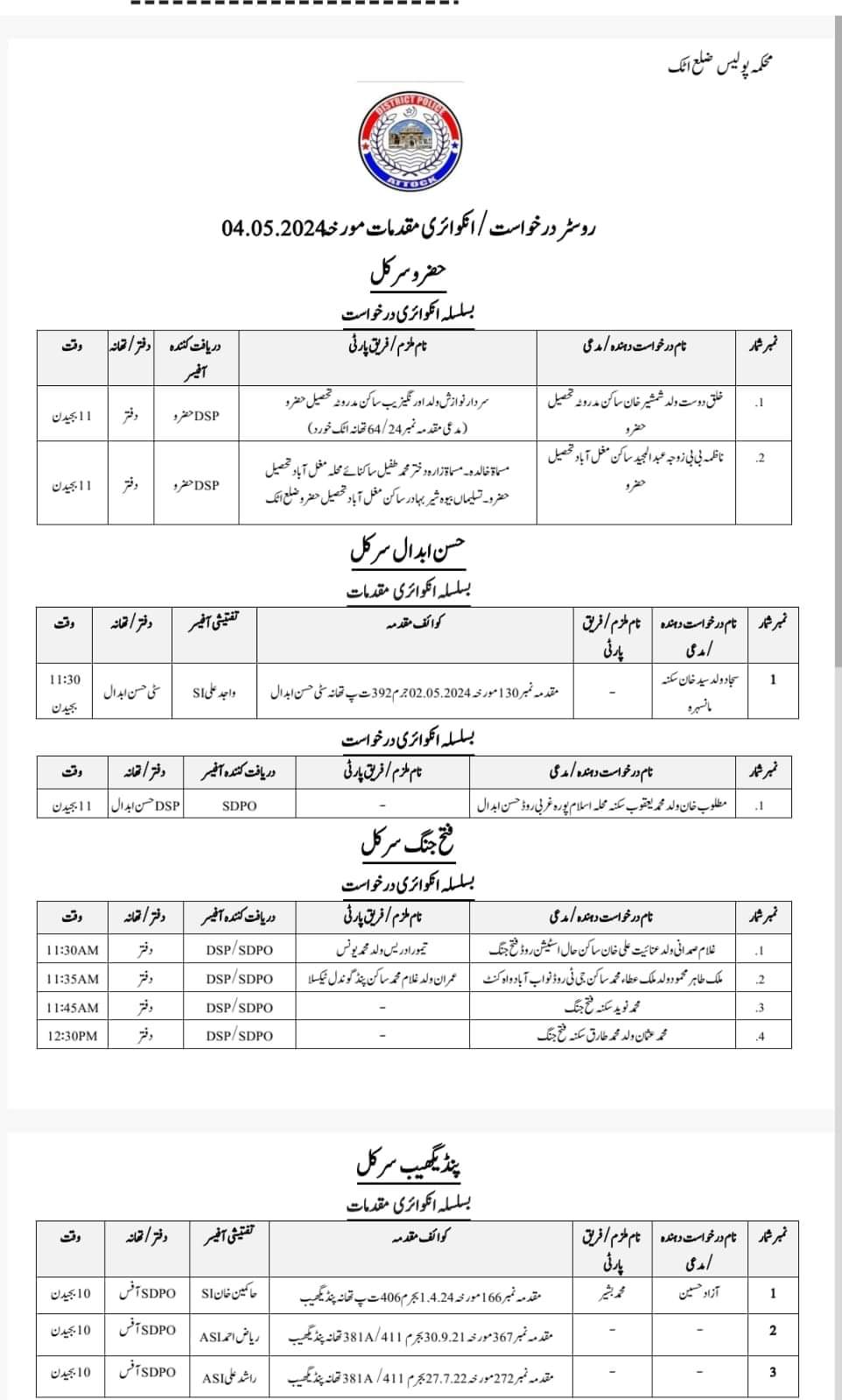 انسپکٹر جنرل آف پولیس،پنجاب کے ویژن کے مطابق شہریوں کی سہولت کیلئے تھانہ جات میں بلائے گئے لوگوں کی فہرستیں تھانہ جات کے نوٹس بورڈز, اٹک پولیس کے سوشل میڈیا اکاؤنٹس پر شیئر کردی گئی ہیں. Punjab Police Pakistan RPO Rawalpindi Everyone