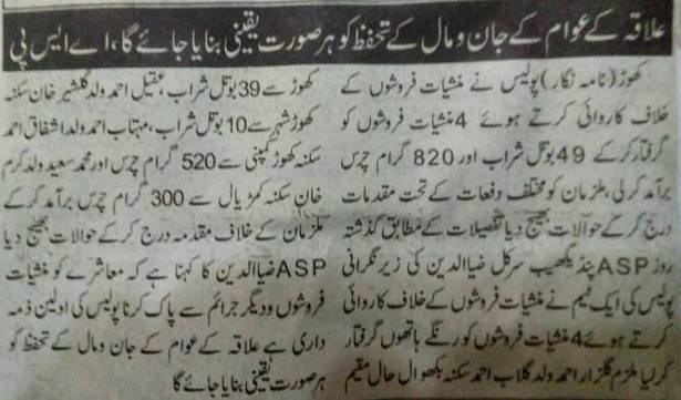 چار منشیات فروش گرفتار49 بوتل شراب اور 820گرام چرس برآمد