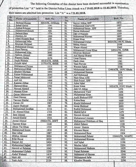 لسٹ اے پروموشن امتحانات میں کامیاب ہونے والے امیدوران کی فہرست