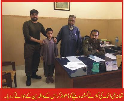 ڈسٹرکٹ پولیس آفیسر اٹک سید شہزاد ندیم بخاری کی خصوصی ہدایات پر تھانہ سٹی اٹک پولیس نے ایک بچہ محمد طلحہٰ ولد محمد افضل سکنہ اٹک جو کہ مورخہ 11.04.2019کو گھر سے لاپتہ ہو گیا تھا کو ڈھونڈ کر والدین کے حوالے کر دیا۔ Apr 13, 2019