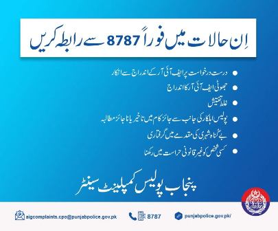 ان حالات میں فوری 8787 سے رابطہ کر یں۔
