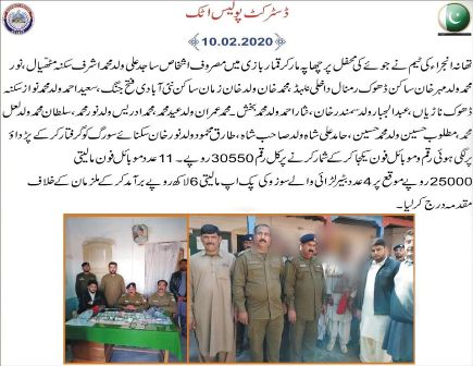 تھانہ انجراء کی ٹیم کی قماربازوں کے خلاف کاروائی۔