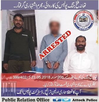 تھانہ فتح جنگ کی ٹیم کی اشتہاری مجرمان کے خلاف کامیاب کاروائی۔