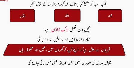 کل سے تین دن کے لیے مکمل لاک ڈاؤن ہے۔ گھروں میں رہیں محفوظ رہیں