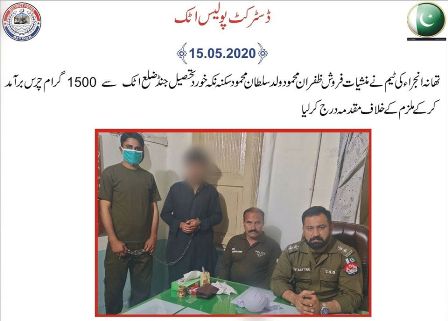 ڈسٹرکٹ پولیس آفیسر اٹک سید خالد ہمدانی کی خصوصی ہدایات پر تھانہ انجراء کی ٹیم کی منشیات فروشوں کے خلاف کامیاب کاروائی۔