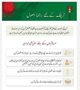 عوام کی سہولت کے پیش نظر ٹریفک کو کھولنے کا فیصلہ کیا گیا ہے ۔ دوران سفر اِن احتیاطی تدابیر پر عمل کر کے ایک باشعور شہری ہونے کا ثبوت دیجئے.