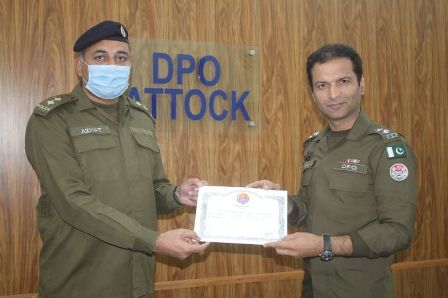 ڈی پی او اٹک سید خالد ہمدانی نے سب انسپکٹر عظمت حیات انچارج ایچ آئی یو کو تھانہ حضرو کے دو مقدمات قتل میں پیشہ وارانہ اور اچھی تفتیش کرنے کے نتیجہ میں ملزمان کے عدالت سے سزا یاب ہونے پر تعریفی سرٹفیکیٹ اور نقد انعام سے نوازا