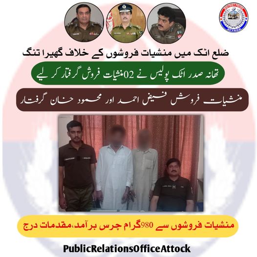 تھانہ صدر اٹک پولیس کی منشیات فروشوں کے خلاف کامیاب کاروائی