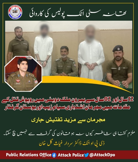 12 سال اور 02 سال سے بیرون ملک دوبئی میں روپوش مجرمان اشتہاری سیام اور بوسان گرفتار