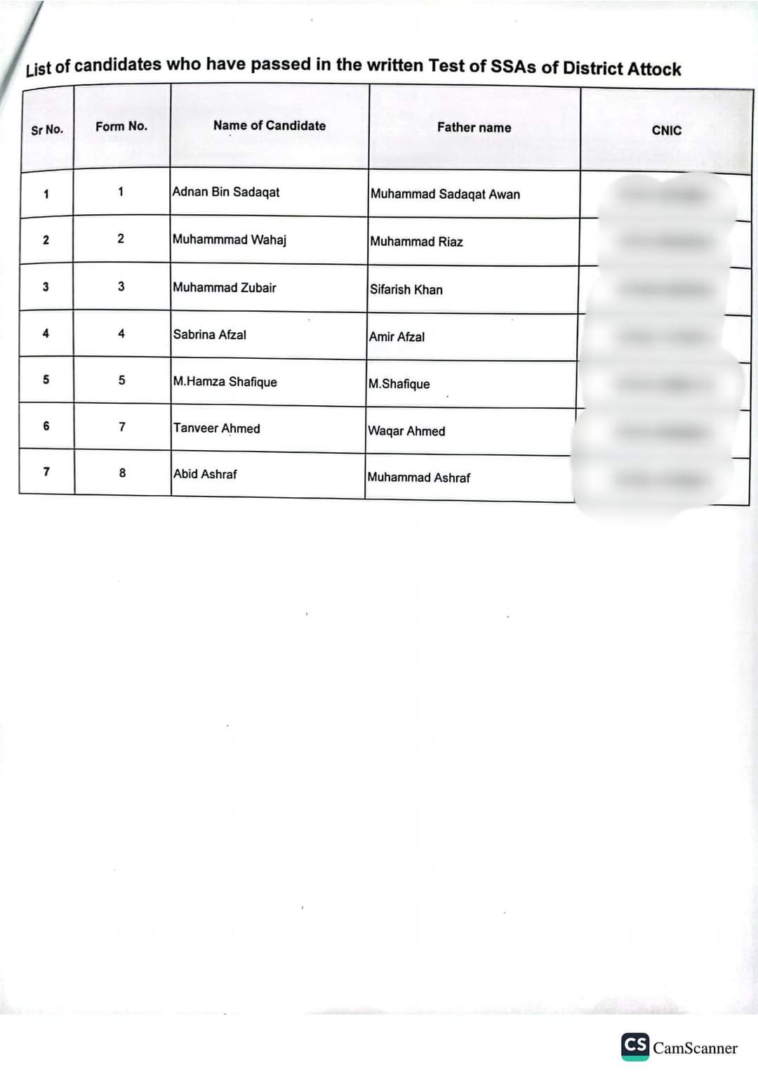 ضلع اٹک کے پی ایس اے (PSA) اور ایس ایس اے (SSA) کے تحریری امتحان میں کامیاب ہونے والے امیدواران کی فہرست،