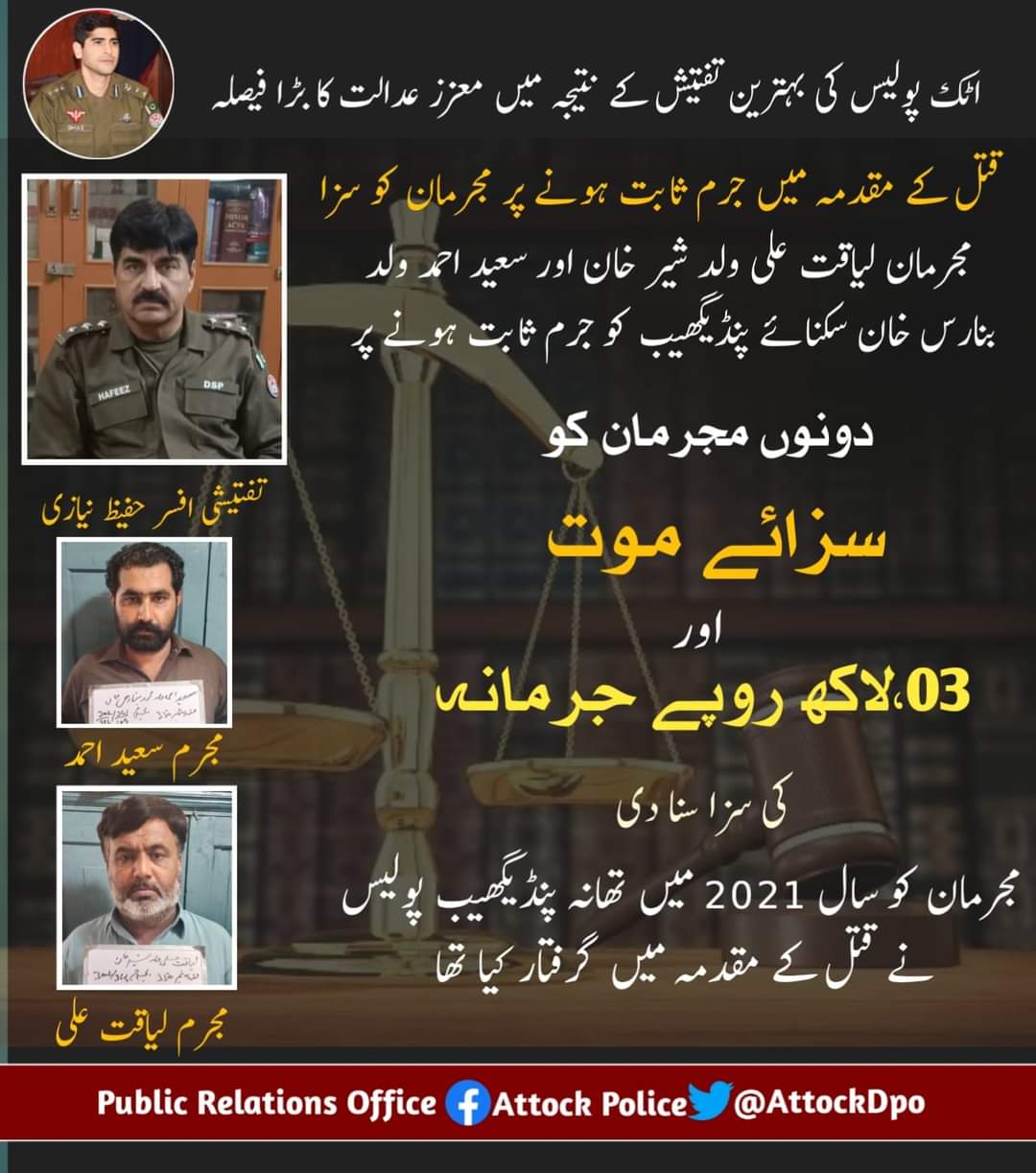 اٹک پولیس کی بہترین تفتیش کے نتیجہ میں معزز عدالت کا بڑا فیصلہ،