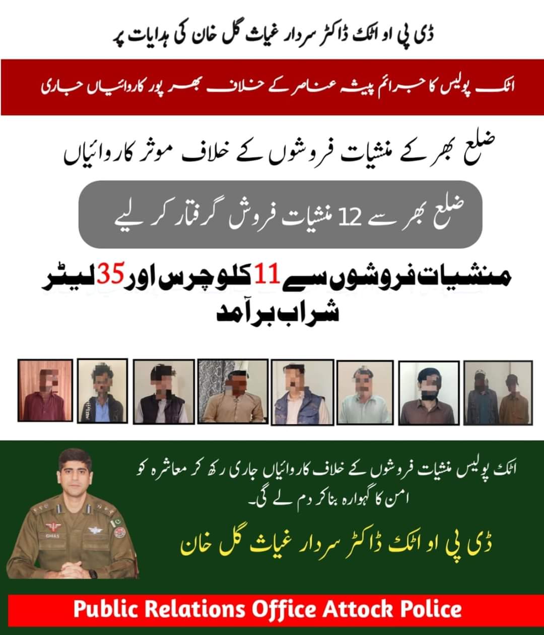 اٹک پولیس کی منشیات فروشوں کے خلاف کاروائیاں جاری