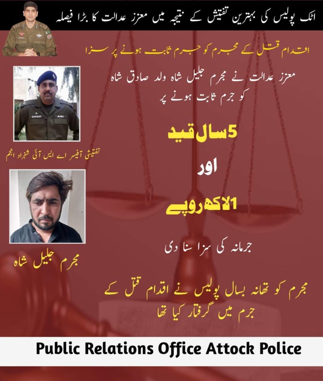 اٹک پولیس کی بہترین تفتیش کے نتیجے میں معزز عدالت کا فیصلہ