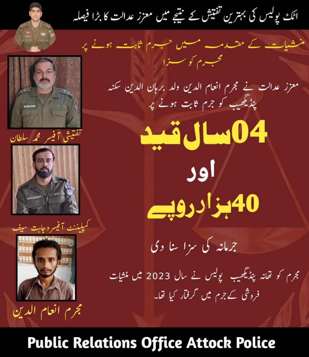 اٹک پولیس کی بہترین تفتیش کے نتیجے میں معزز عدالت کا فیصلہ
